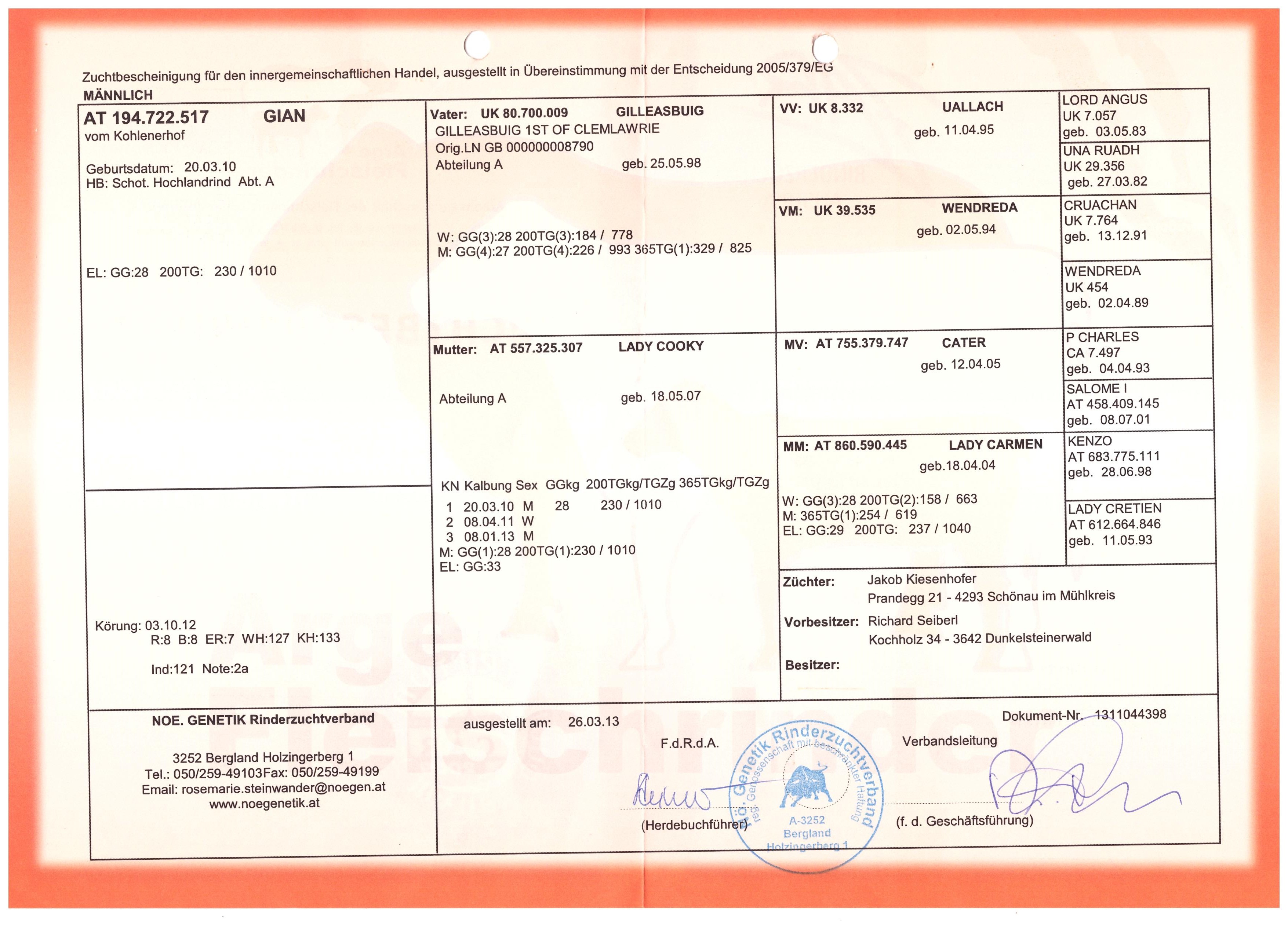 Weitere Zuchtstiere die bei uns als Herdenchefs im Einsatz waren: