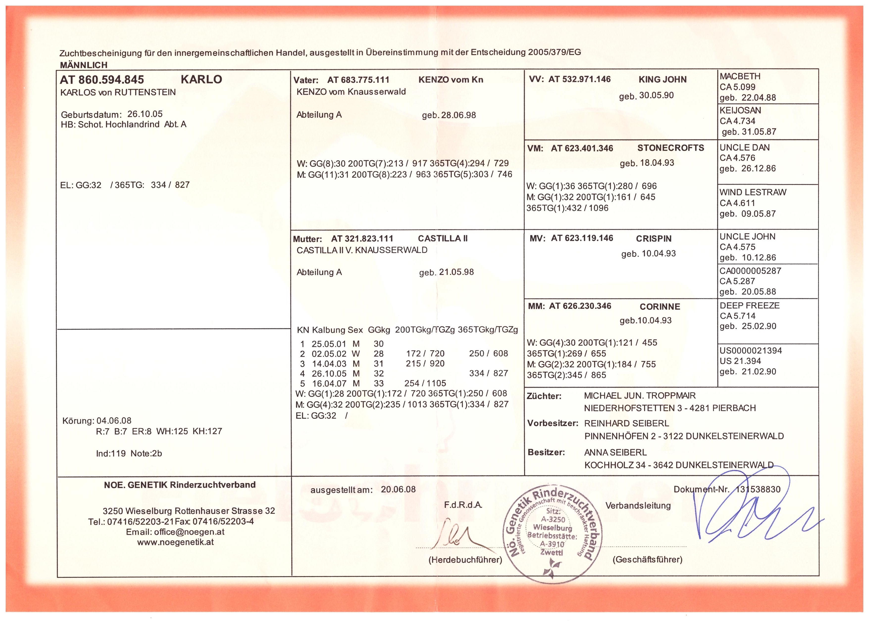 In die Genetik unserer Tiere fließen bekannte und langjährig bewährte Zuchtlinien.